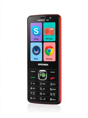 TELEFONO BRONDI ENERGY 4G NERO/ROSSO È UN TELEFONO CELLULARE CON SCOCCA MONOBLOCCO DUAL -SIM CON SUPPORTO ALLE RETI GSM QUAD BAND (850/900/1800/1900 MHZ) E PERMETTE DI CONNETTERSI SIA IN WI-FI CHE IN MODALITÀ SUPER VELOCE 4G, È UN TELEFONINO DALLE GRANDI POTENZIALITÀ, GRAZIE AL SUO MAXI DISPLAY HD A COLORI DA 3″ CON UNA RISOLUZIONE DI 240X320 PUNTI, APP PREINSTALLATE: WHATSAPP, SKYPE, CONVERTITORE VALUTA E METEO.